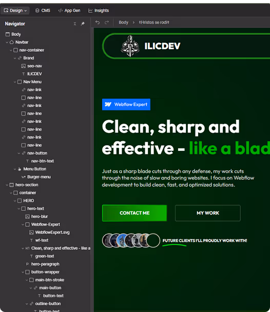 Webflow allows me to build websites that are more than just a “nice facade.” Each project is technically clean, fast, fully responsive, and easy to maintain. Thanks to that I am m able to deliver high quality websites in a relatively short timeframe not average compromises, but solid, long term solutions.